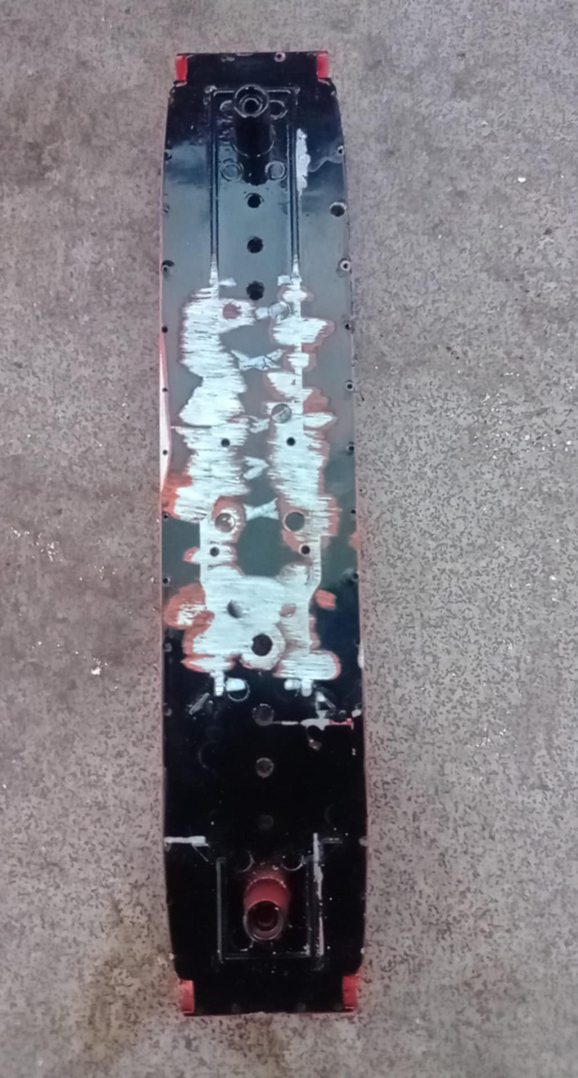 Provedl jsem nějaké to broušení přebytečného jak na rámu, tak na kastli. Rám jsem kvůli velké vrstvě barvy prohnal louhem. Z kabiny jsem sundal nálitek na číslo, z kapot jsem sundal původní výlisek loga ČKD, sundal jsem stupačky, sundal jsem zábranu na výlez na stupačky.