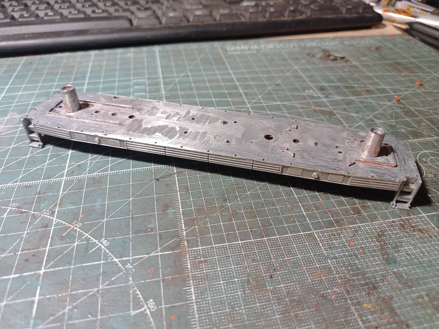 Vše přebytečné je pryč, zkusmo jsem model sestavil. Teď přijde naopak proces dodělávání toho, co chybí. Rám je posazen na "dílenské" podvozky