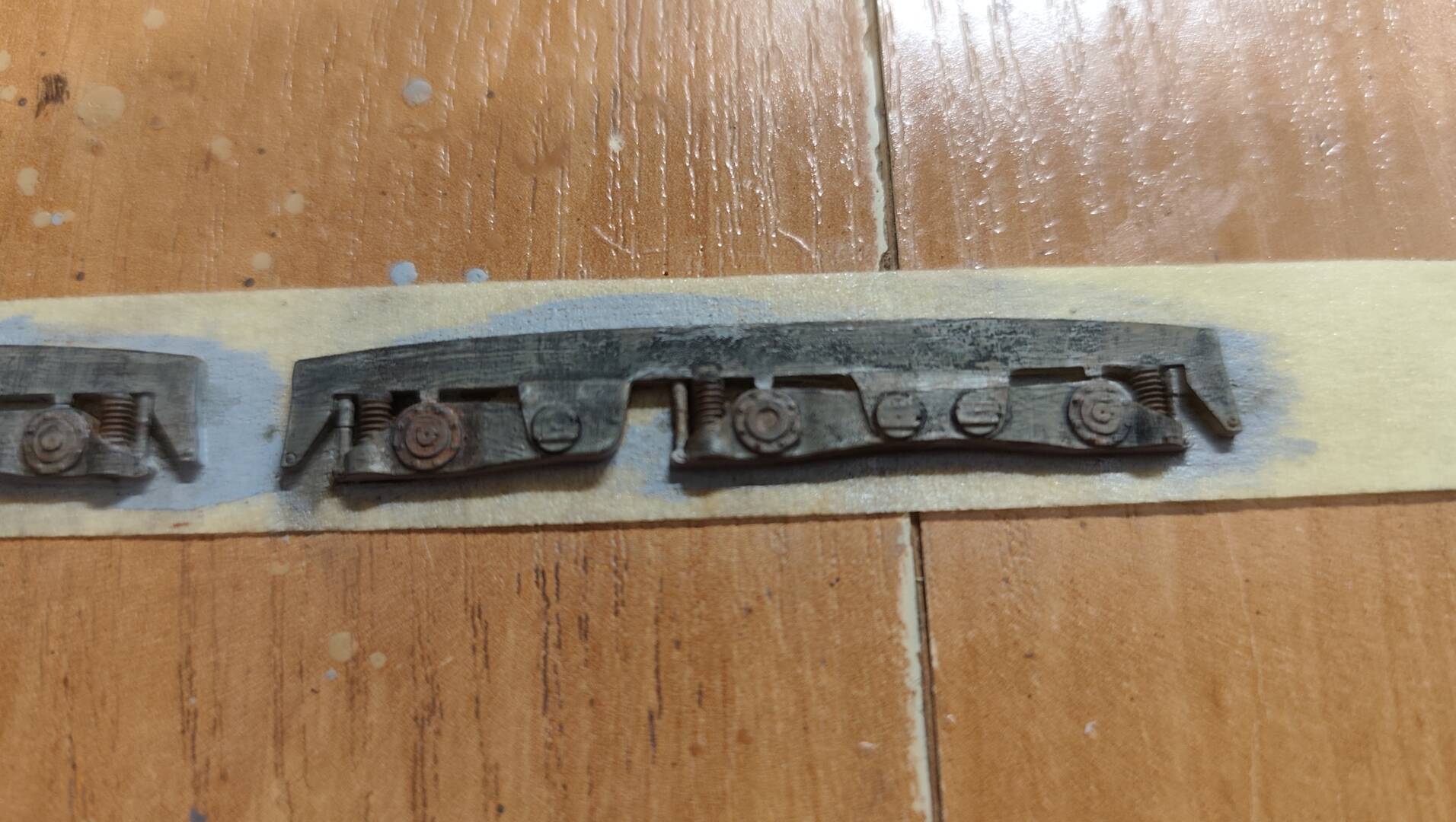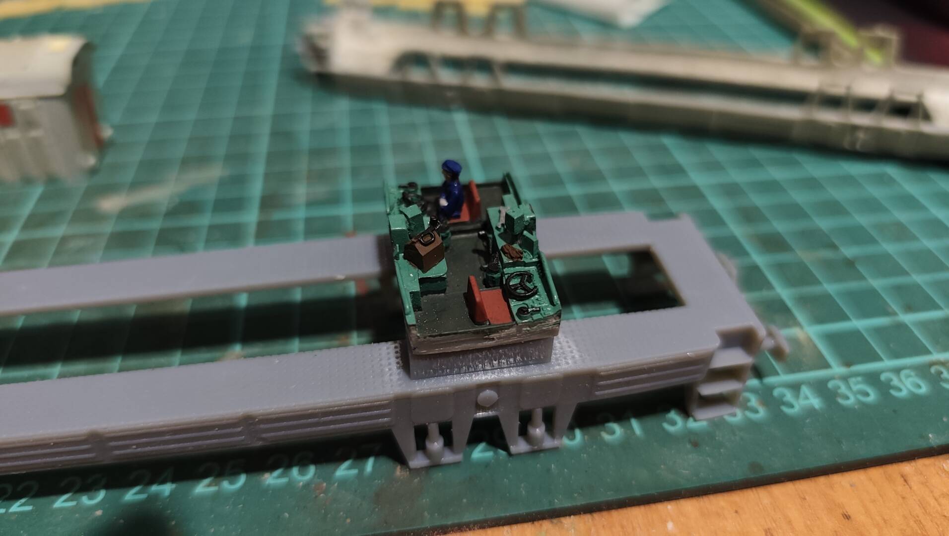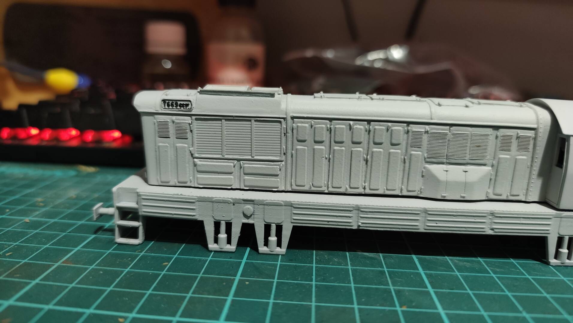 Rám podvozku bol v dosť zlom stave, tak som si vytlačil nový. Taktiež som skúsil vytlačiť dvojfarebné ceduľky, ktoré by mali byť podsvietené, ale ani 0,2mm tryska pri tomto rozmere nie je dostatočne tenká. Takže ceduľky asi pôjdu iné, len nie mosadzné, aby sa dali podsvietiť.