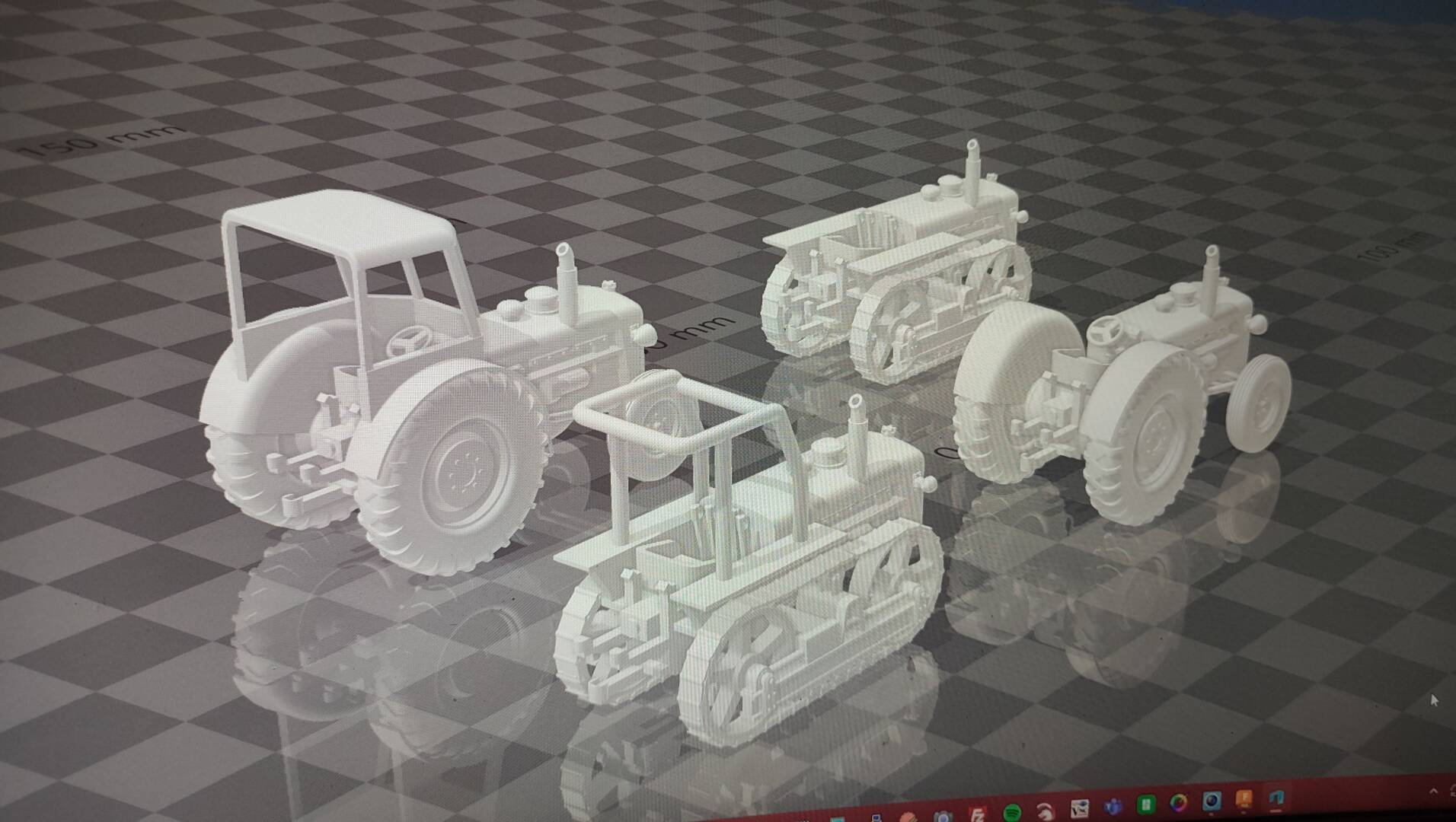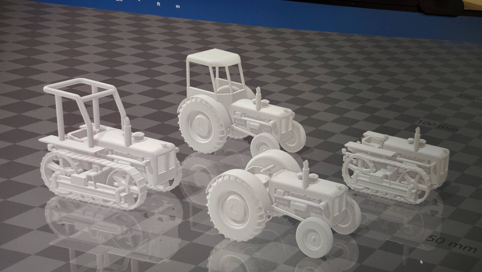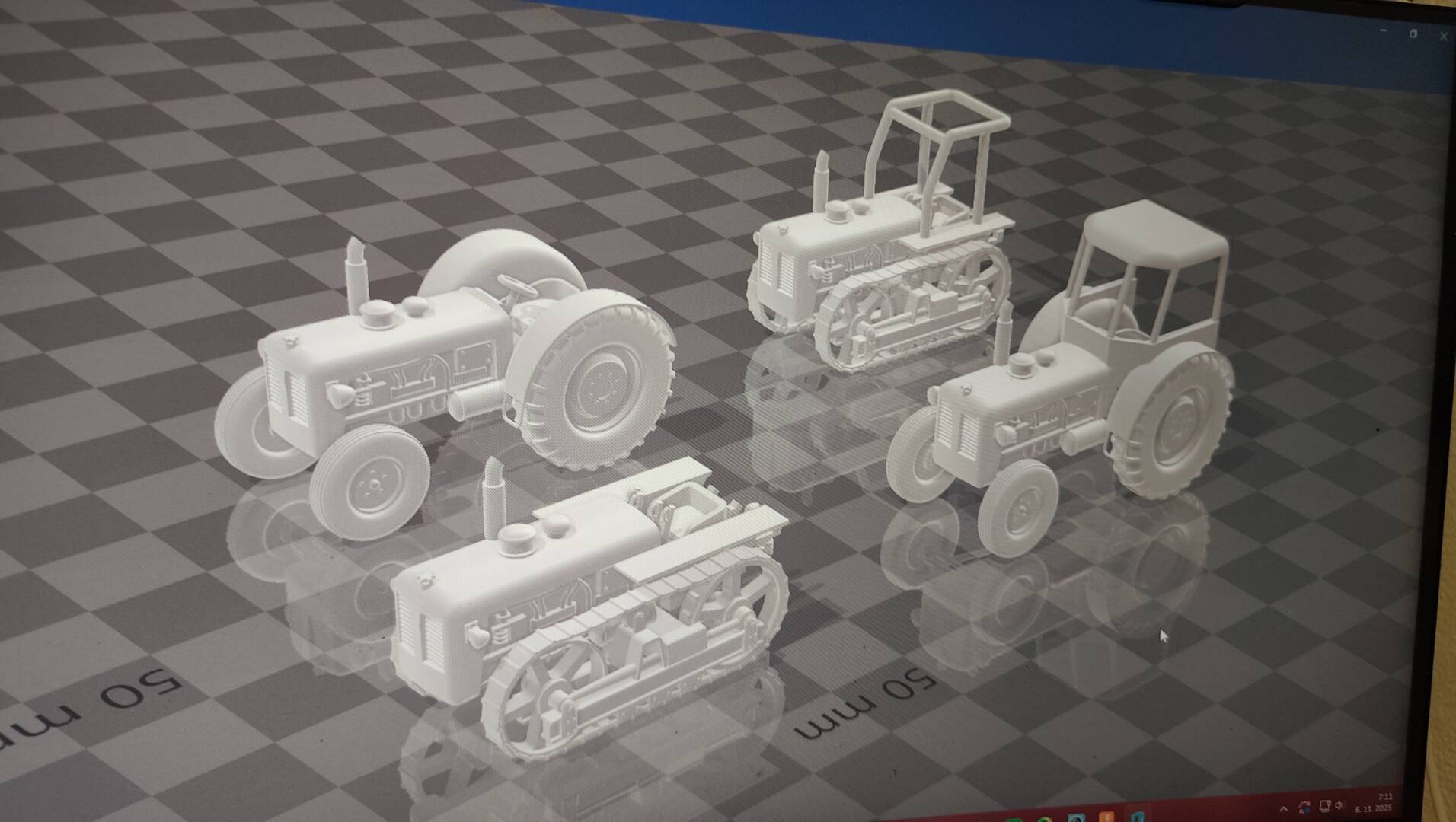 Trochu lepšie foto toho, čo chystáme, konkrétne 6 variant traktora Zetor 35 super - klasický, s kabínou, pásový, pásový s klietkou a potom dve verzie prototypového, ktorý pravdepodobne nešiel do sériovej výroby - bolo iba pár prototypov