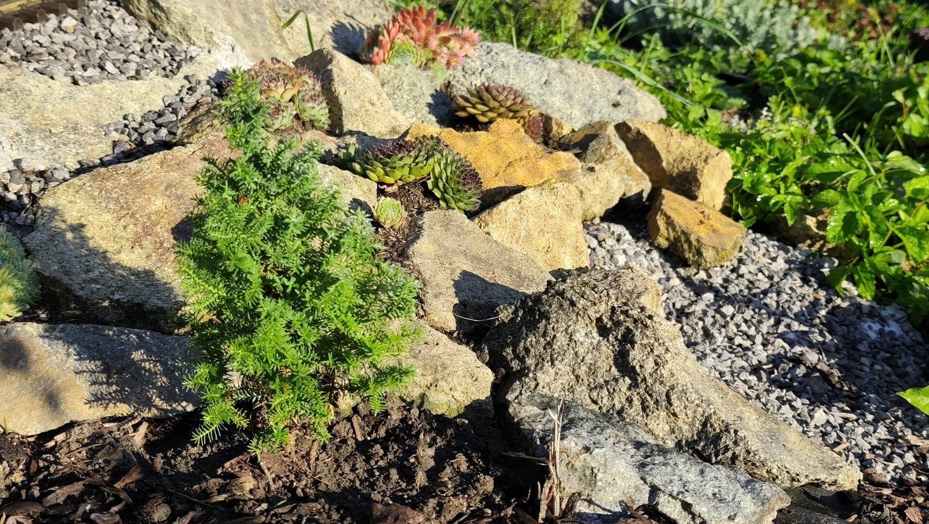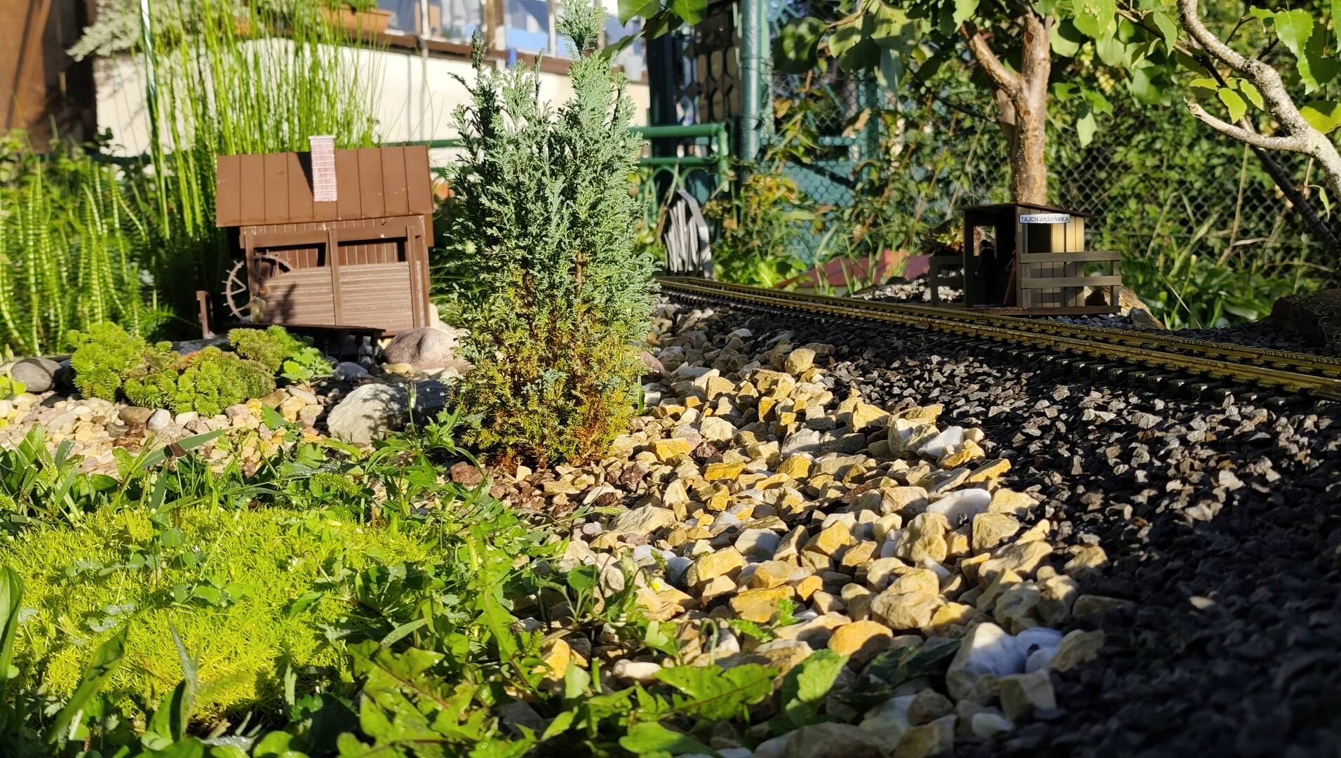 Z okolia stanice sme dnes dali preč kôru a nahradili ju rôznymi kameňmi. Hlavný dôvod sú drozdy, ktoré kôru neskutočne rozhadzujú všade po okolí. Nebolo to zlé, ale aj takto to vyzerá celkom dobre. Aby som nezabudol, inšpiroval ma Samba a dal som nad väčšiu časť tieniacu plachtu. Tieň sa presúva ako ide deň, takže všetko má aj niekedy slnko a niekedy nie. Ani voda v jazierku sa nebude tým pádom tak prehrievať a naše 4 rybky sa teda určite tiež potešia 🙂